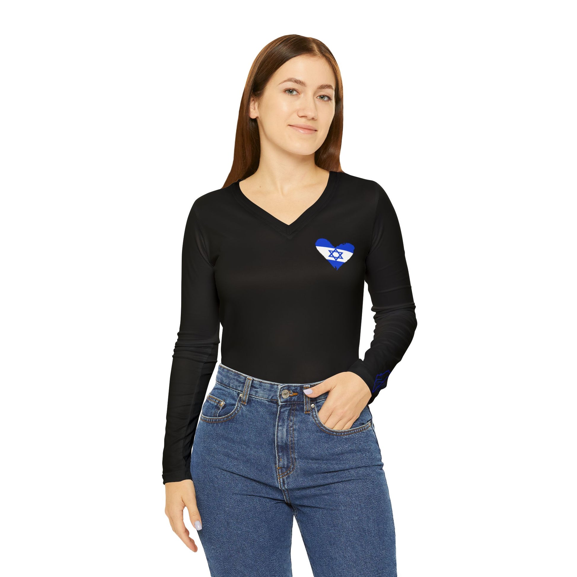 Zionist AF makes combining the stylish v-neck cut along with a highly versatile fabric blend that's 95% polyester and 5% spandex, these long-sleeve shirts are the perfect choice for daily life. Spread love while showing your love with this purchase. All pieces from the Zionist AF collection support non profits in Israel.